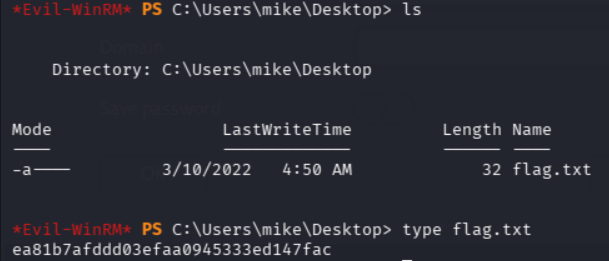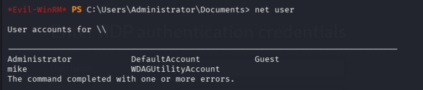 在Administrator用户的目录下没有找到flag,查看net user发现存在用户 mike
